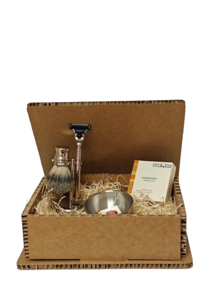 Geschenkset bestehend aus Rasierset chrom mit