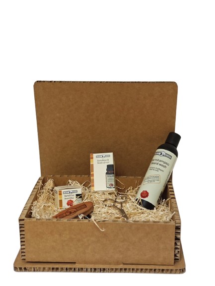 Geschenkset bestehend aus Bartshampoo, Bartpflegeöl 20ml, ung. Bartwachs 16ml, Bartbürste und Bartschere