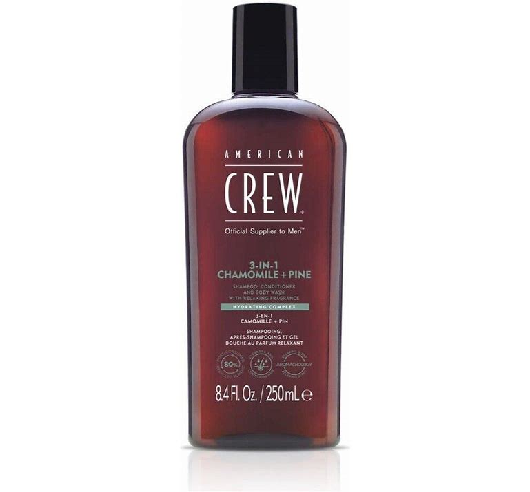 American Crew 3in1 Chamomile & Pine Sham Das American Crew 3in1 Chamomile + Pine Shampoo vereint Shampoo, Conditioner und Duschgel in einem Produkt. Mit entspannendem Kamille- und Kiefernduft reinigt und pflegt es Haare, Kopfhaut und Körper sanft und effektiv. Highlight Shampoo, Conditioner und Duschgel in einem Aromatherapie-inspirierte Mischung aus Kamille und Kiefer Entfernt Schmutz, Fett und Rückstände effektiv und pflegend Verpackung besteht zu 80 % aus recyceltem Kunststoff Inhalt: 250ml Beschreibung Erlebe die perfekte Kombination aus Funktionalität und Luxus mit dem American Crew 3in1 Chamomile + Pine Shampoo. Dieses innovative Pflegeprodukt vereint Shampoo, Conditioner und Duschgel in einer einzigen, leichten Formel, die speziell für Männer entwickelt wurde. Der aromatherapeutische Duft aus Kamille und Kiefer sorgt für Entspannung und Frische, während die sanfte Reinigungsformel Schmutz, Schweiß und Styling-Rückstände gründlich entfernt. Die pflegenden Inhaltsstoffe sorgen für weiches, geschmeidiges Haar, eine gesunde Kopfhaut und erfrischte Haut. Geeignet für alle Haartypen, ist dieses 3-in-1 Produkt ein zuverlässiger Begleiter – ob zuhause oder unterwegs. Dank seiner nachhaltigen Verpackung aus 80 % recyceltem Kunststoff kombiniert es erstklassige Pflege mit Umweltbewusstsein.