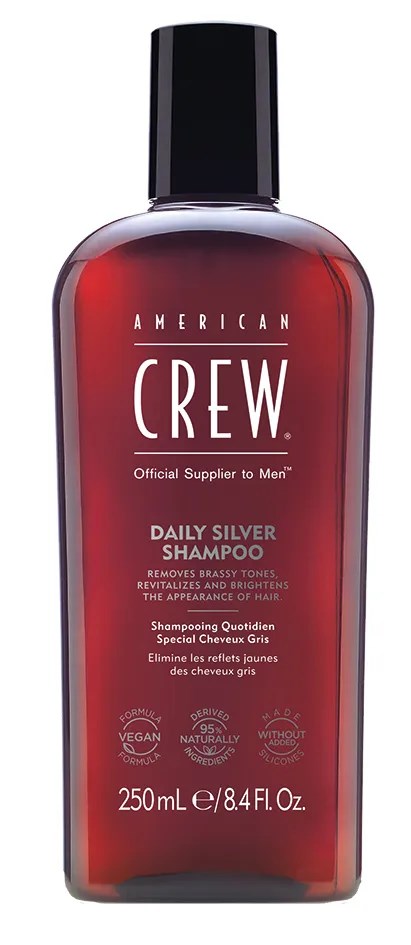 American Crew Daily Silver Shampoo 250ml Hair Care & Body Das American Crew Daily Silver Shampoo (250ml) ist speziell für Leute mit grauem, weißem oder blondem Haar entwickelt. Es hellt sanft auf und entfernt Kupfertöne, während es Feuchtigkeit spendet und das Haar pflegt. Mit 95% natürlichen Inhaltsstoffen, vegan und frei von Parabenen und Silikonen – ideal für die tägliche Anwendung. Highlight Neutralisiert Kupfertöne und betont den natürlichen Glanz Feuchtigkeitsspendend Vegan und frei von Parabenen und Silikone Inhalt: 250 ml Beschreibung Das American Crew Daily Silver Shampoo (250ml) aus der renommierten Hair & Scalp Pflegeserie bietet eine erstklassige Pflege für Herren mit grauem, weißem oder blondem Haar. Formuliert, um Kupfertöne zu neutralisieren und den natürlichen Glanz der Haare zu betonen, spendet dieses Shampoo intensive Feuchtigkeit und schützt vor Austrocknung. Die Formel enthält 95% natürliche Inhaltsstoffe und ist besonders sanft zur täglichen Anwendung geeignet. Zudem ist das Shampoo vegan und verzichtet auf Parabene und Silikone, wodurch es sich auch ideal für Bartträger eignet.